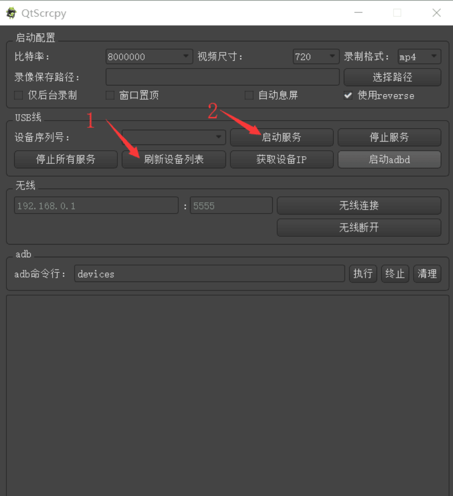 - 启动adbd:启动 Android 设备的 adbd 服务,无线连接之前,必须要启动